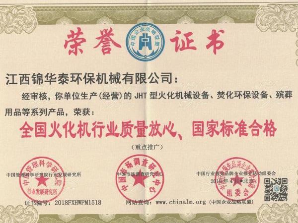 • 全國(guó)火化行業(yè)質(zhì)量放心合格